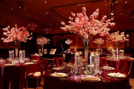 桜を大胆に配置した二人の出発の日にふさわしいコーディネート