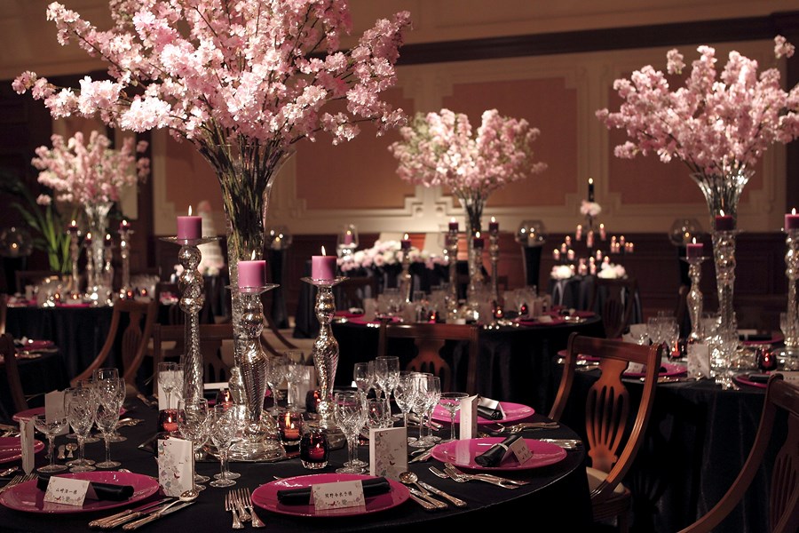 桜を大胆に配置した二人の出発の日にふさわしいコーディネート