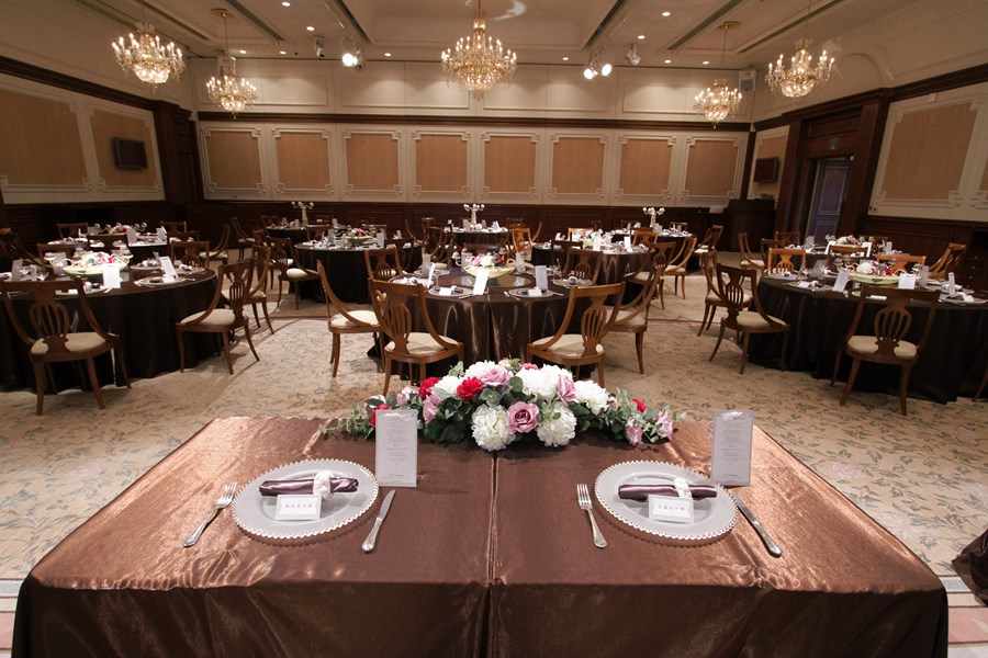 ツヤのあるクロスにシャンデリアの光が反射し輝く
