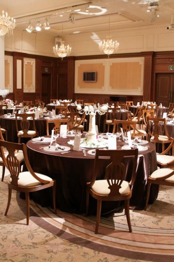 ツヤのあるクロスにシャンデリアの光が反射し輝く