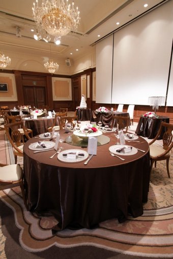 ツヤのあるクロスにシャンデリアの光が反射し輝く