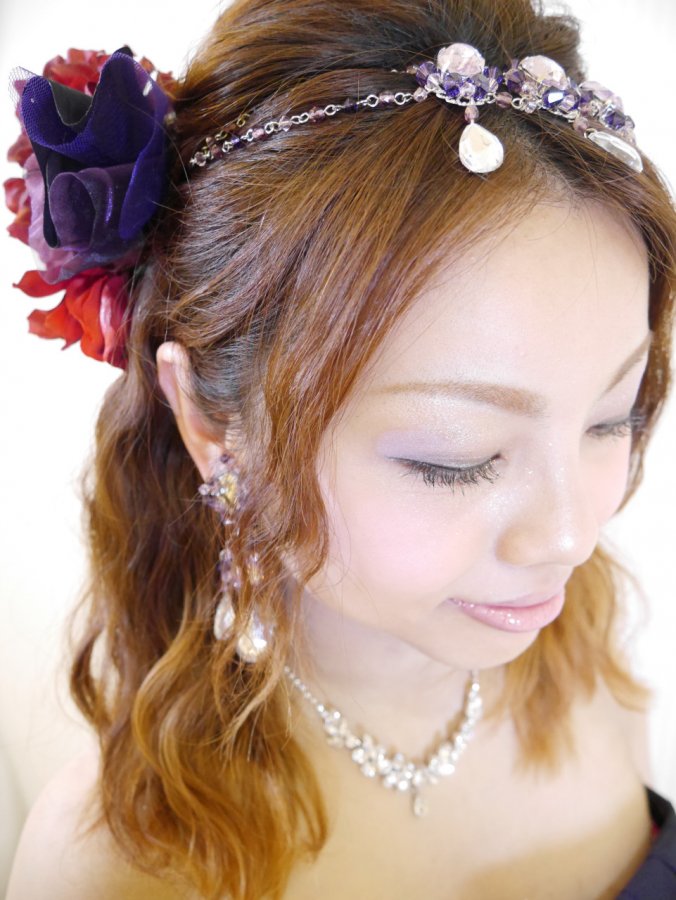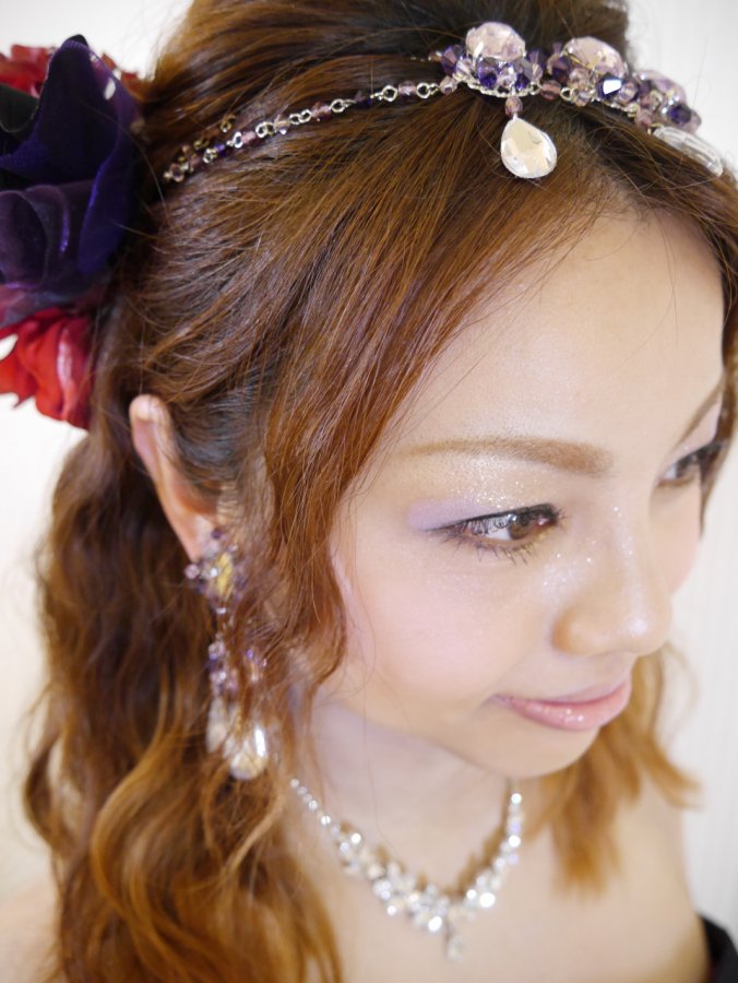 パープルを目元に入れることで、柔らかい・やさしい雰囲気になります。カラーにラメをプラスすることでより華やかになります。