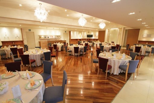解放感たっぷりの会場にオレンジを効かせて爽やかに