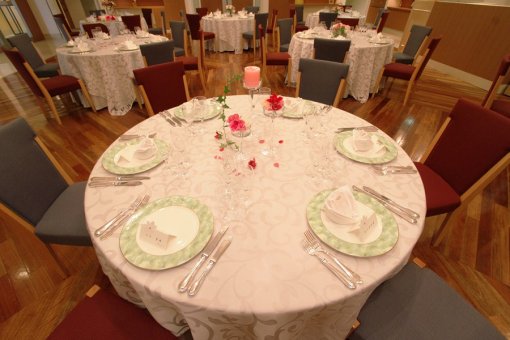 和薔薇と透け感のあるクロスで大人っぽく演出