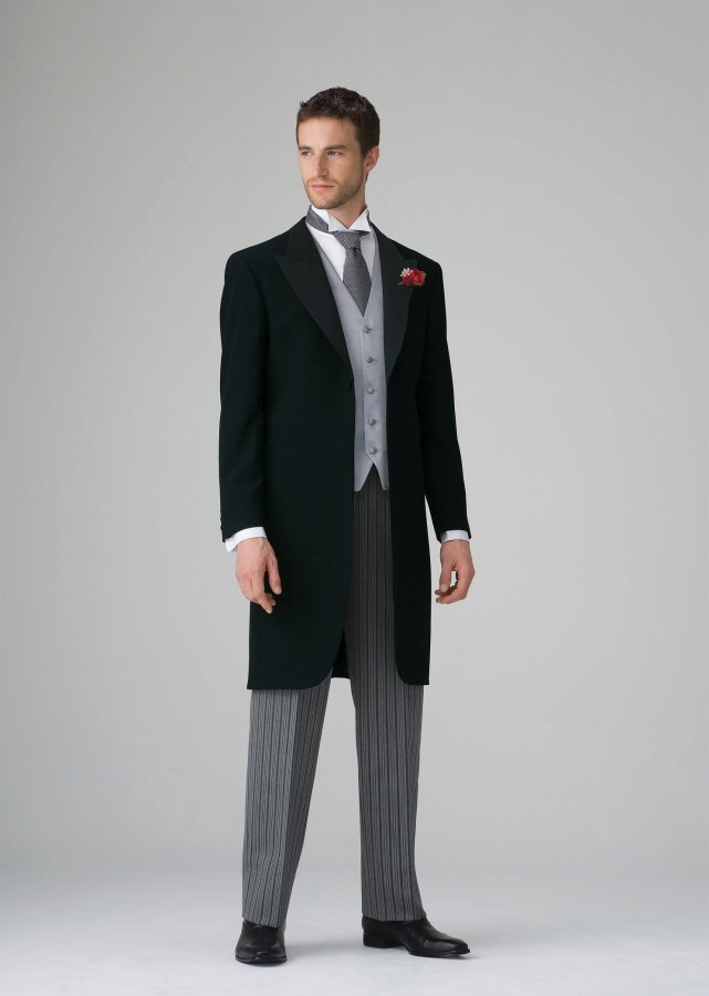 セット内容(ジャケット・ベスト・ズボン・ネクタイ・ポケットチーフ・手袋・ウィングカラーシャツ・カウスボタン・アームバンド)