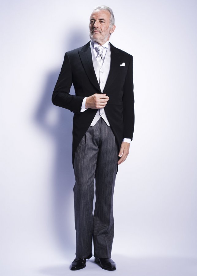 セット内容(ジャケット・ベスト・ズボン・ネクタイ・ポケットチーフ・手袋・ウィングカラーシャツ・カウスボタン・アームバンド)