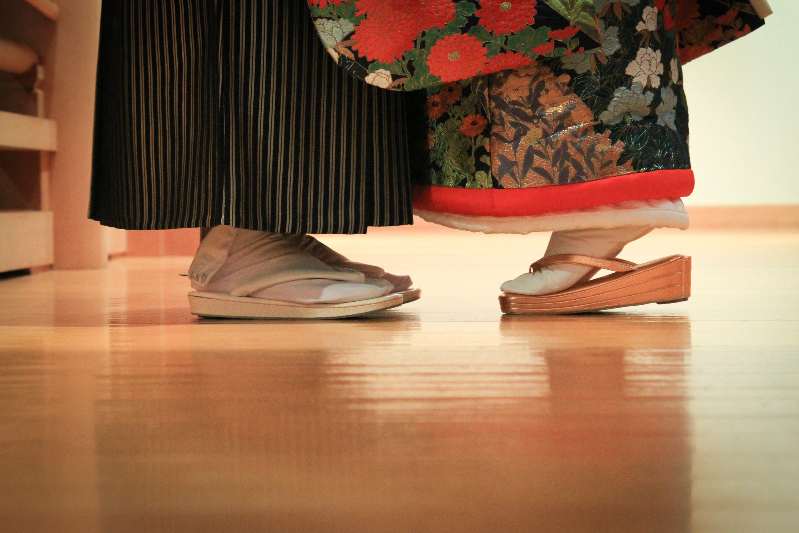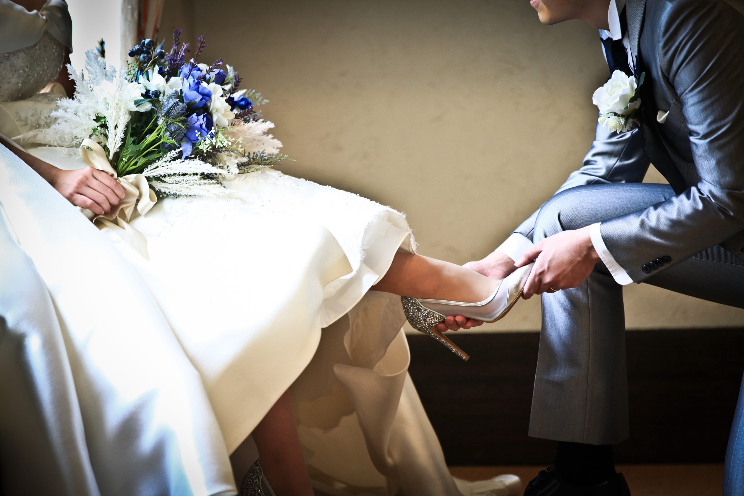 新婦様お気に入りのヒールを新郎様が履かせてあげるショット!