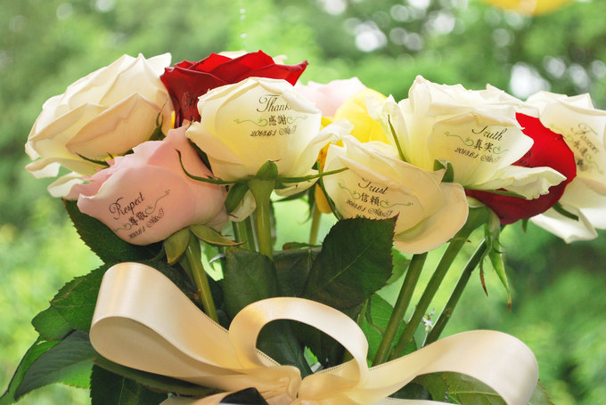 『感謝・誠実・幸福・信頼・希望・愛情・情熱・真実・尊敬・栄光・努力・永遠』