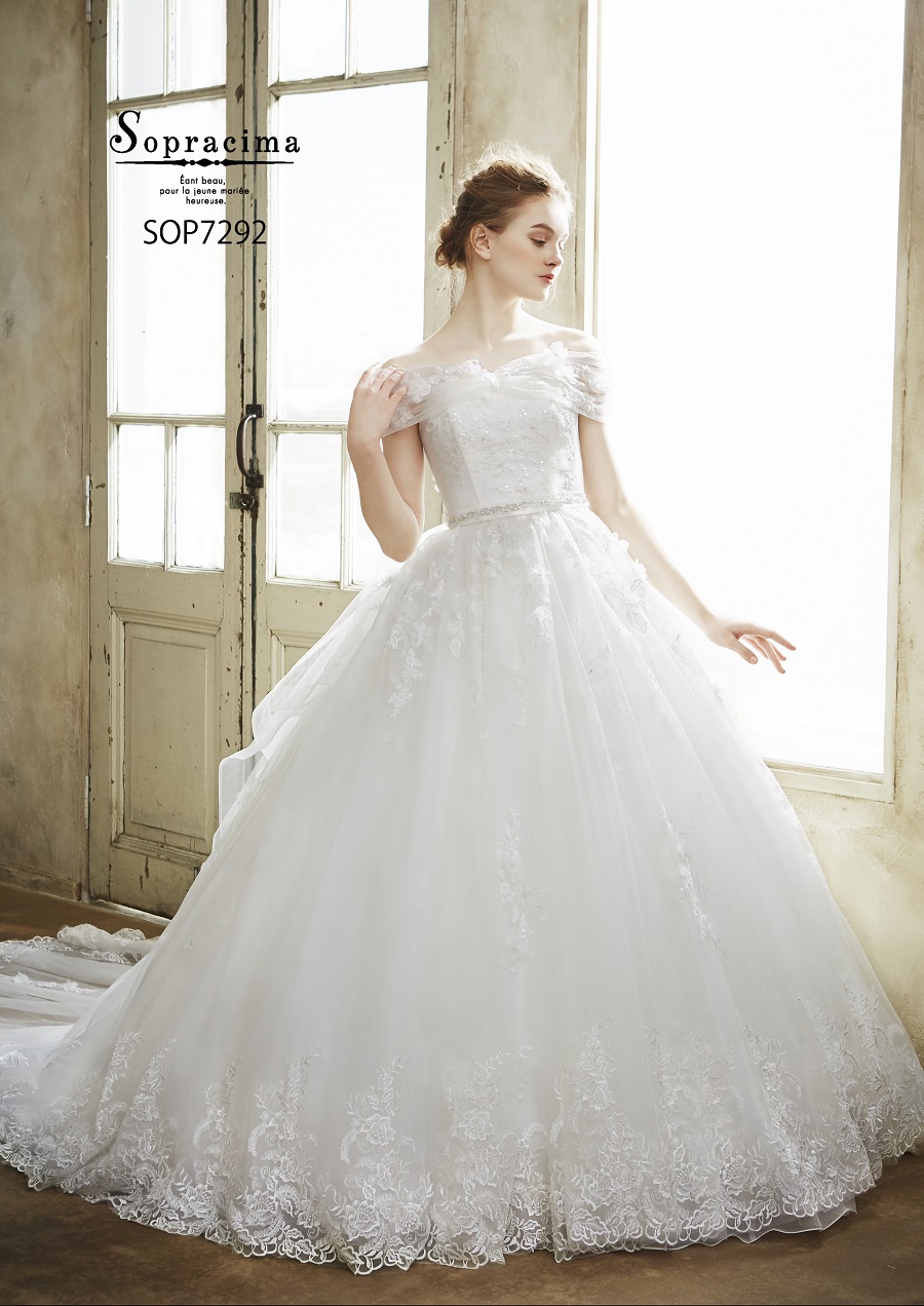 取り外し可能な方のオフショルダーは、女性らしい雰囲気をだしてくれて、プリンセスになれちゃうウェディングドレスです👸🏻