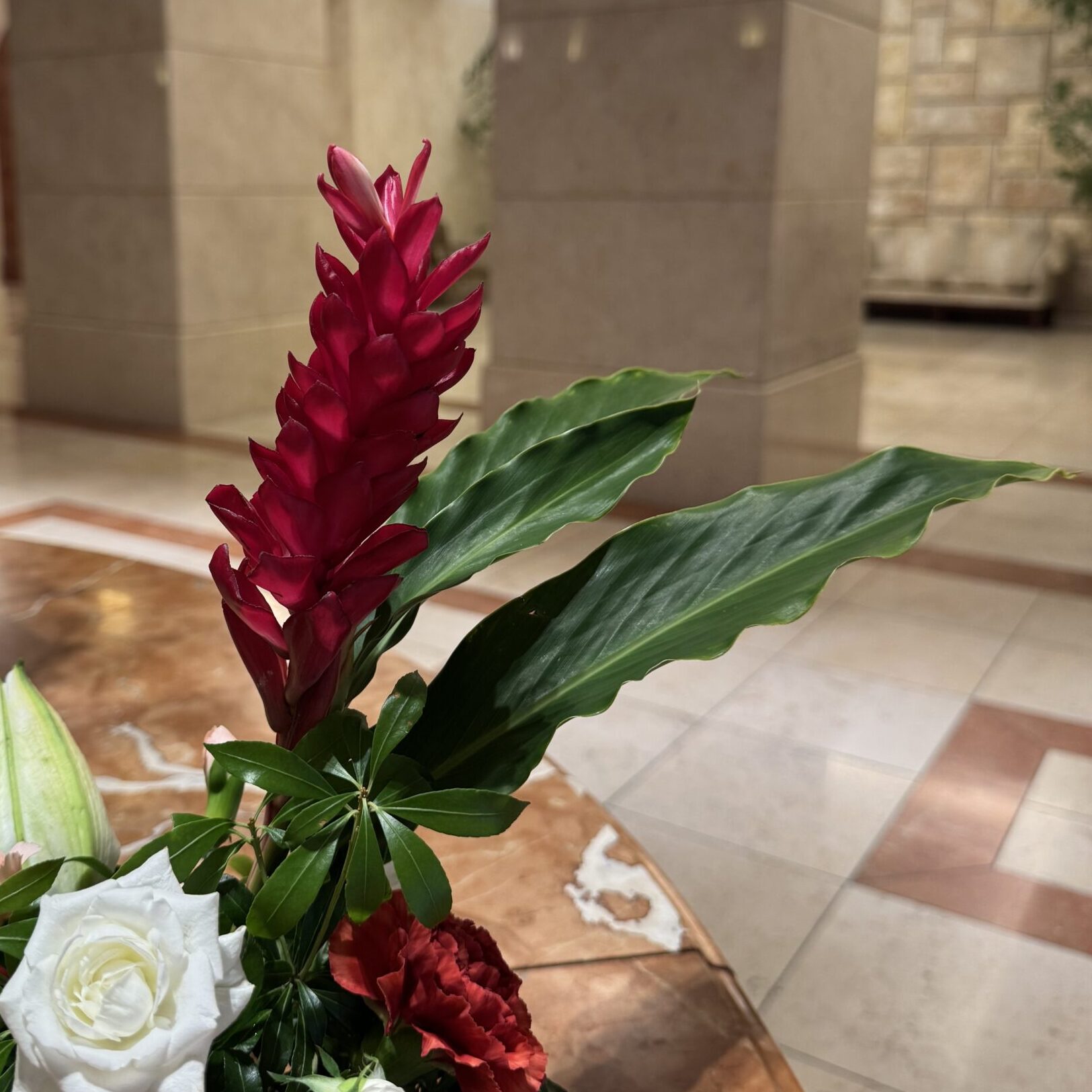 ショウガ科のお花で南国らしい濃い赤です🌺