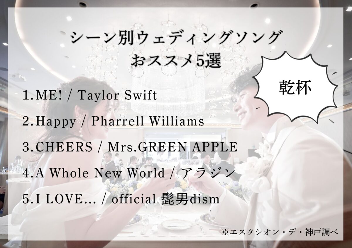 乾杯の掛け声に合わせて、明るく楽しい曲を!