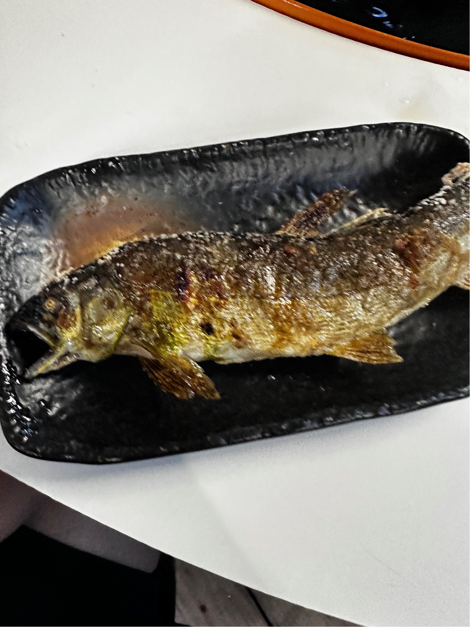 自分で釣った鮎を塩焼きにしてもらって食べることができるというお店でした。