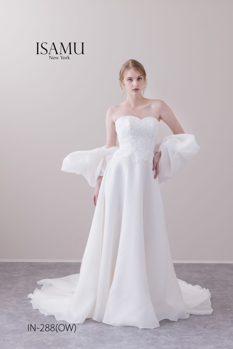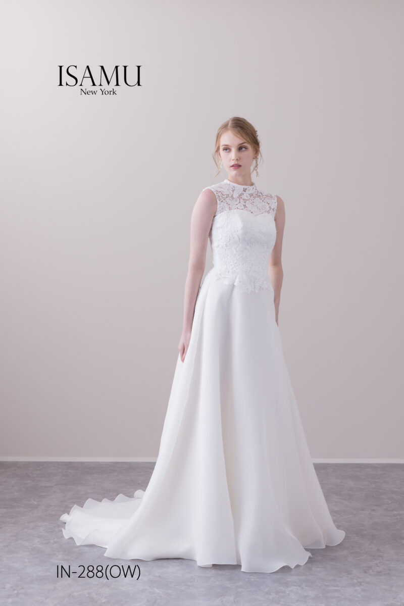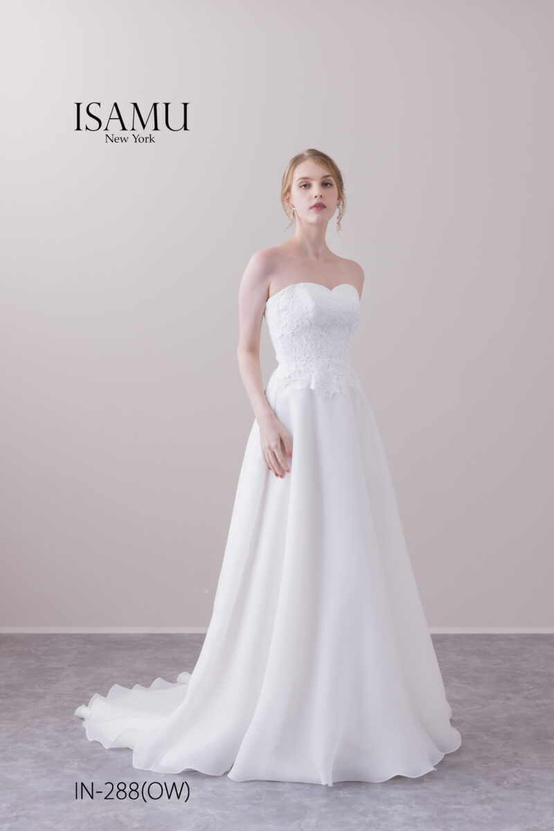 ビスチェの上品なレース、スカート部分はシンプルなオーガンを使用し