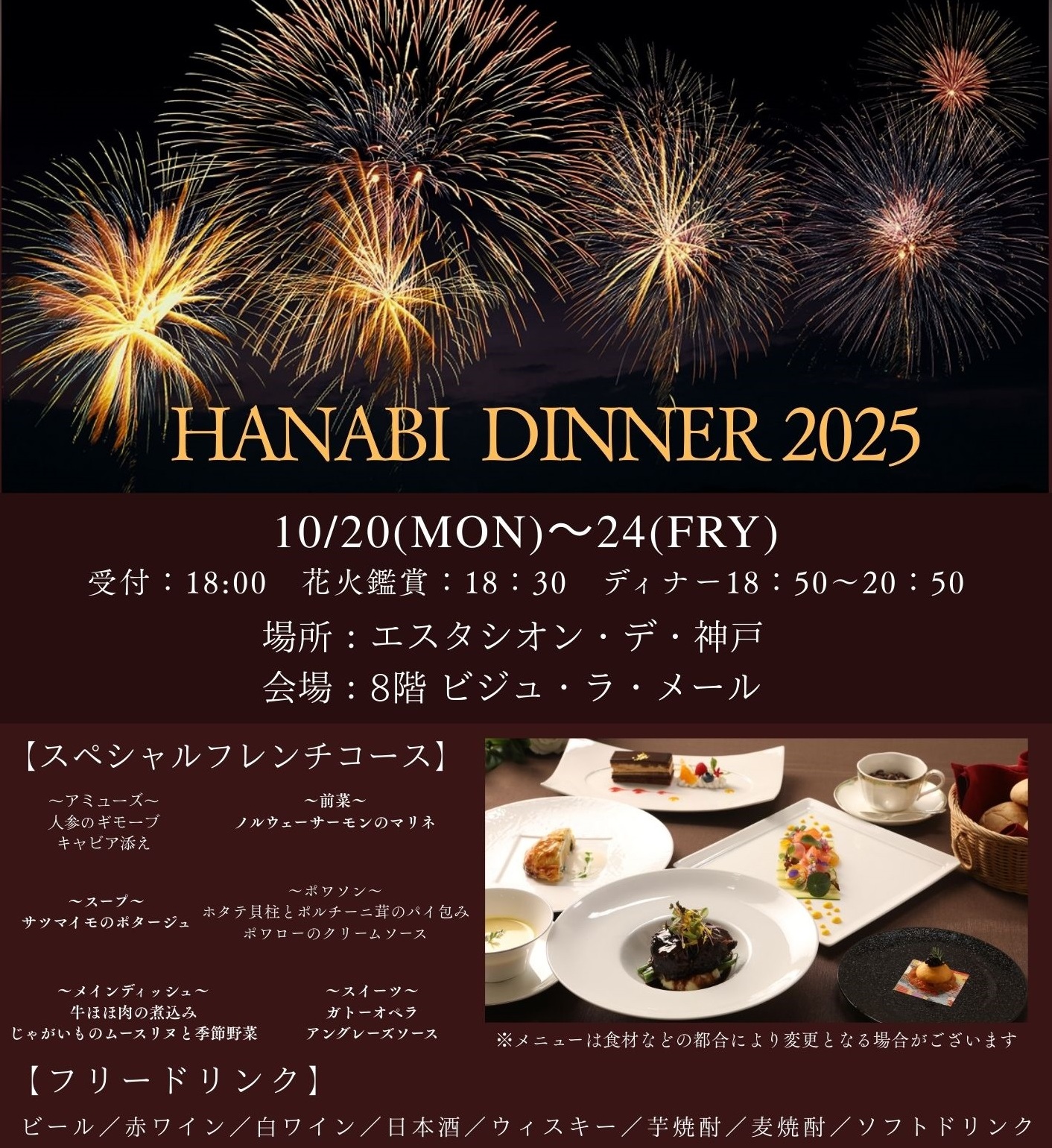 『花火ディナー』を開催いたします!!