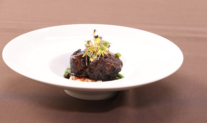 良質な牛ほほ肉を赤ワインと特製ブイヨンで時間をかけて丁寧に煮込み、お箸でほぐれるほどのとろける柔らかさに仕上げました。添えられたジャガイモのムースリーヌは、きめ細かく、なめらかな口どけで、濃厚なソースの味わいを優しく包み込みます。