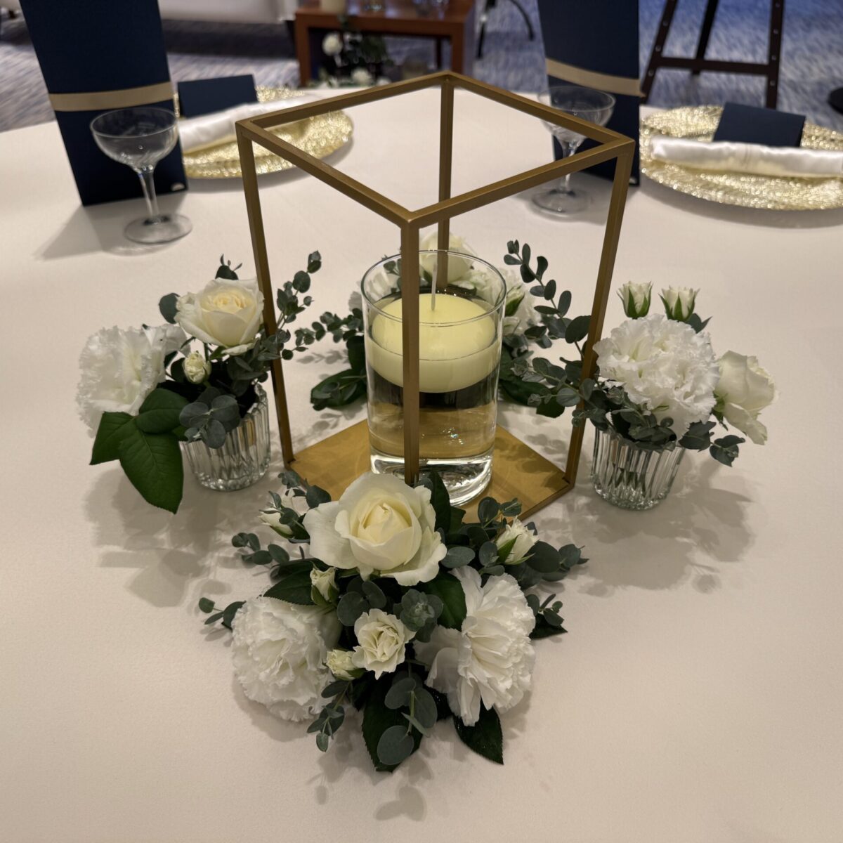 低めのアレンジや高めのアレンジ、キャンドルを使ったり花びらを散らしたりなど