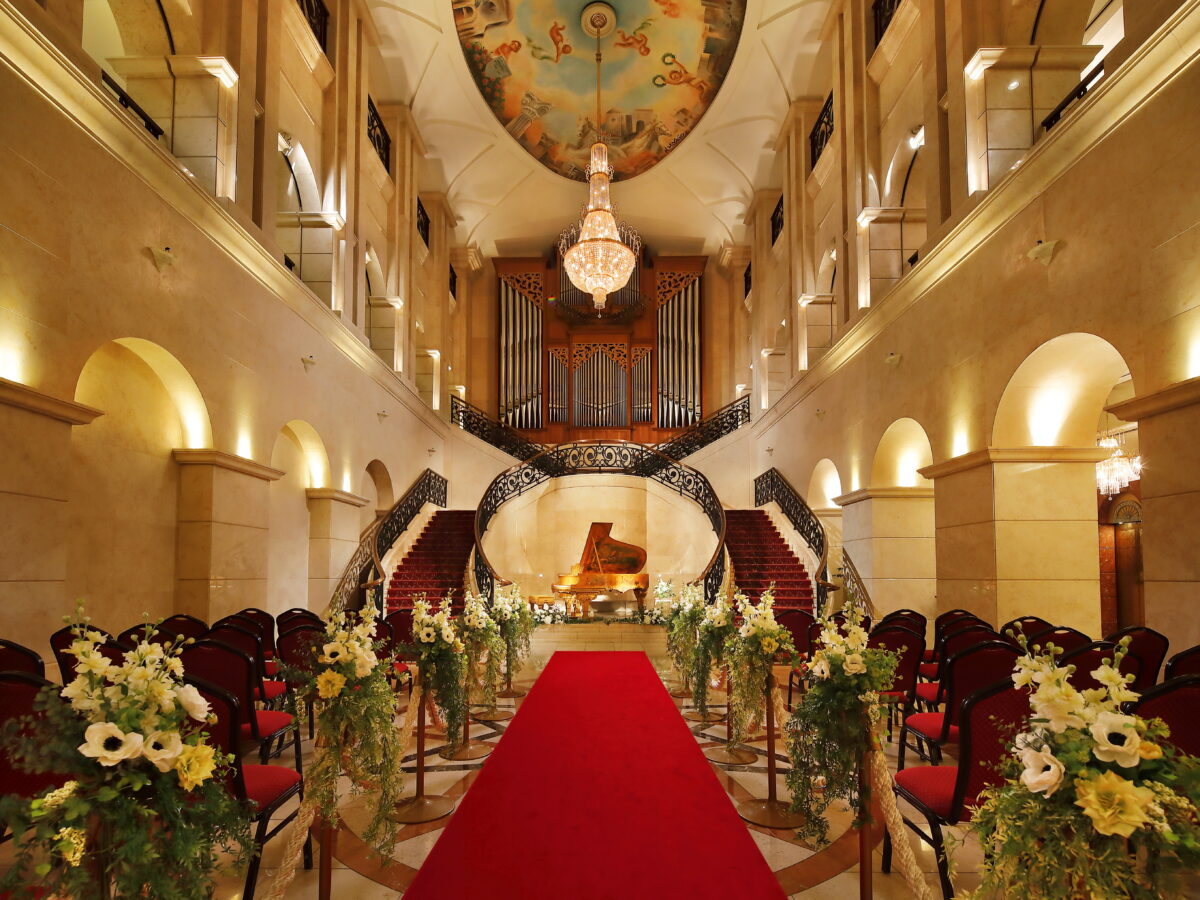 重厚なパイプオルガンと聖歌隊の美しい歌声の中入場するここでの教会式は一生の思い出になる事間違いなしです