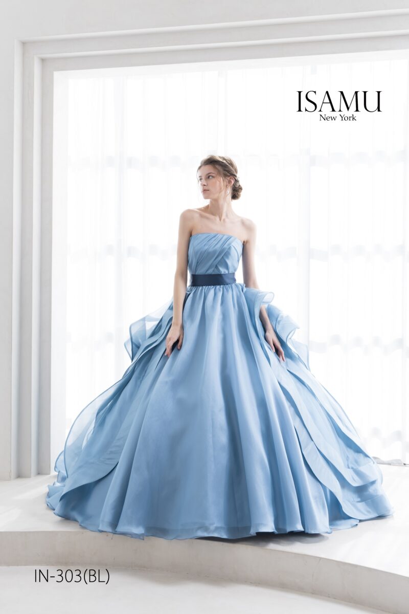 「イサムモリタ」のブルーのカラードレスです☆