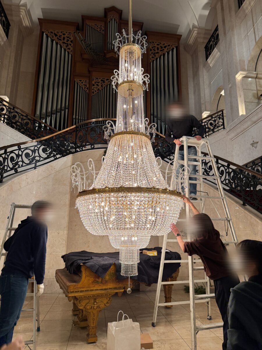 あんな高いシャンデリアをどうやって掃除するのかなと思っていましたが