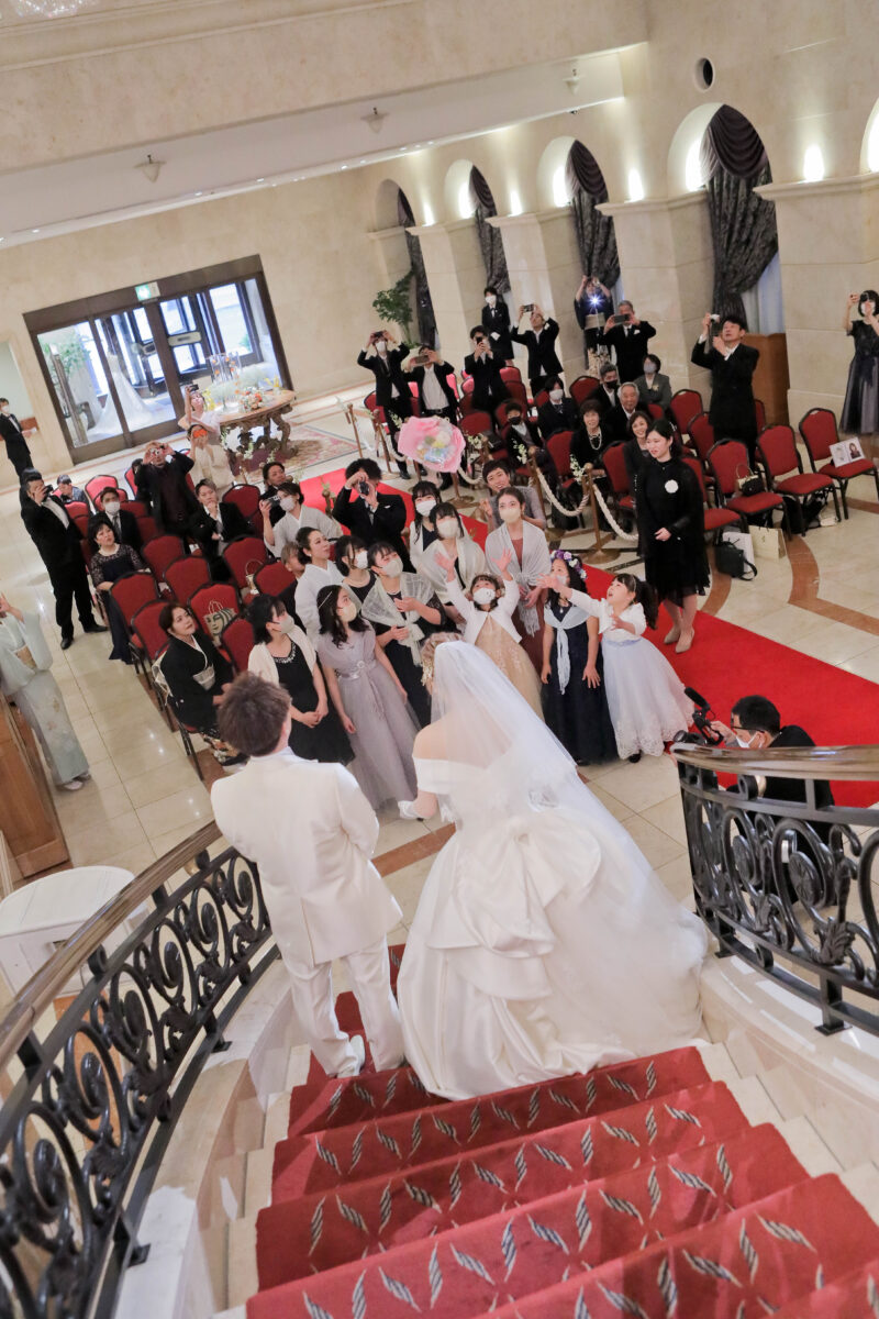 吹き抜けになっておりまして、新郎新婦様が退場する際に