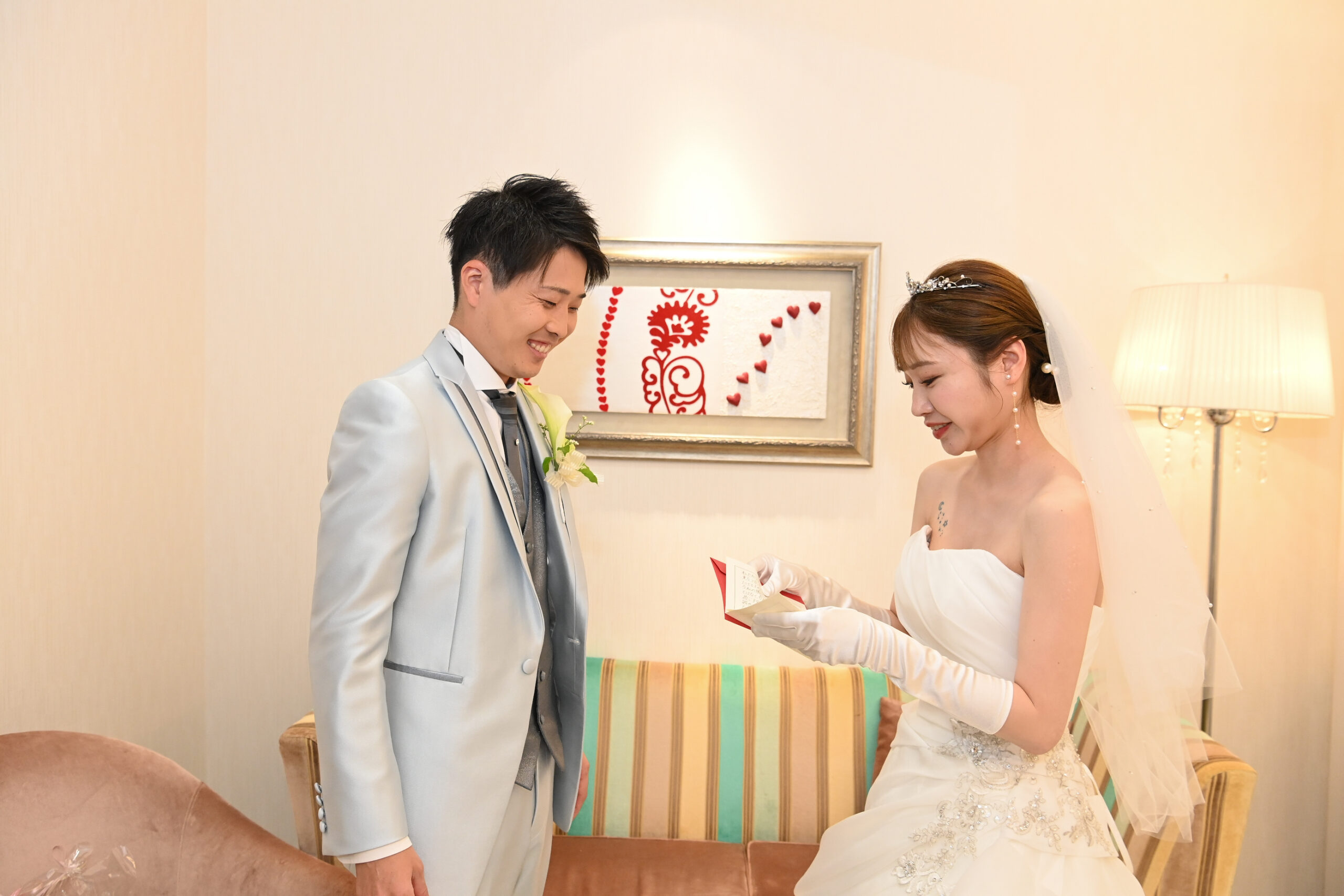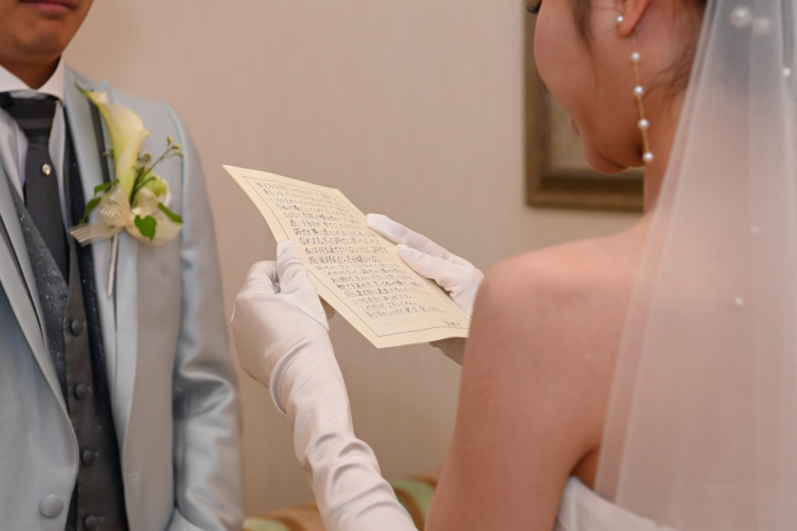 サプライズでお手紙を書かれており、お仕度完了後(挙式前)に、お渡しをされたシーンがございました☺💖