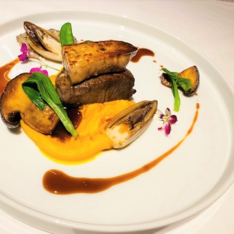 国産牛フィレ肉ステーキ or 鱸のパイ包み焼き~甲殻類ソース~を含む、メインディッシュが選べる試食を組数限定でご用意(試食は3日前迄のご予約要)