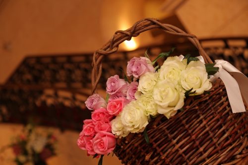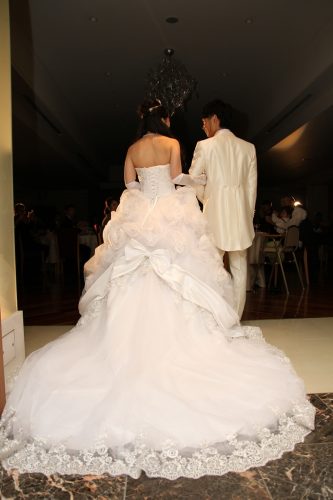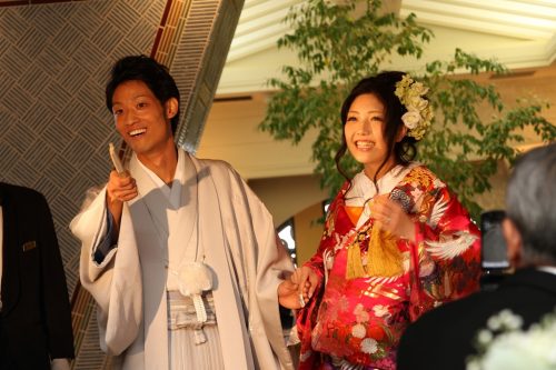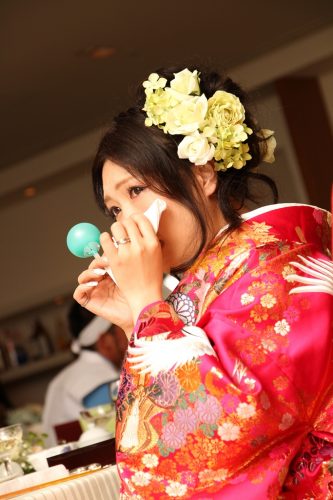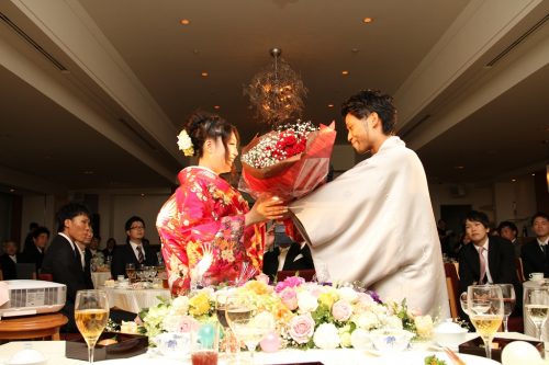 高砂席のお花を洋装と和装で雰囲気が変わるようにリバーシブルにしてくれたり、