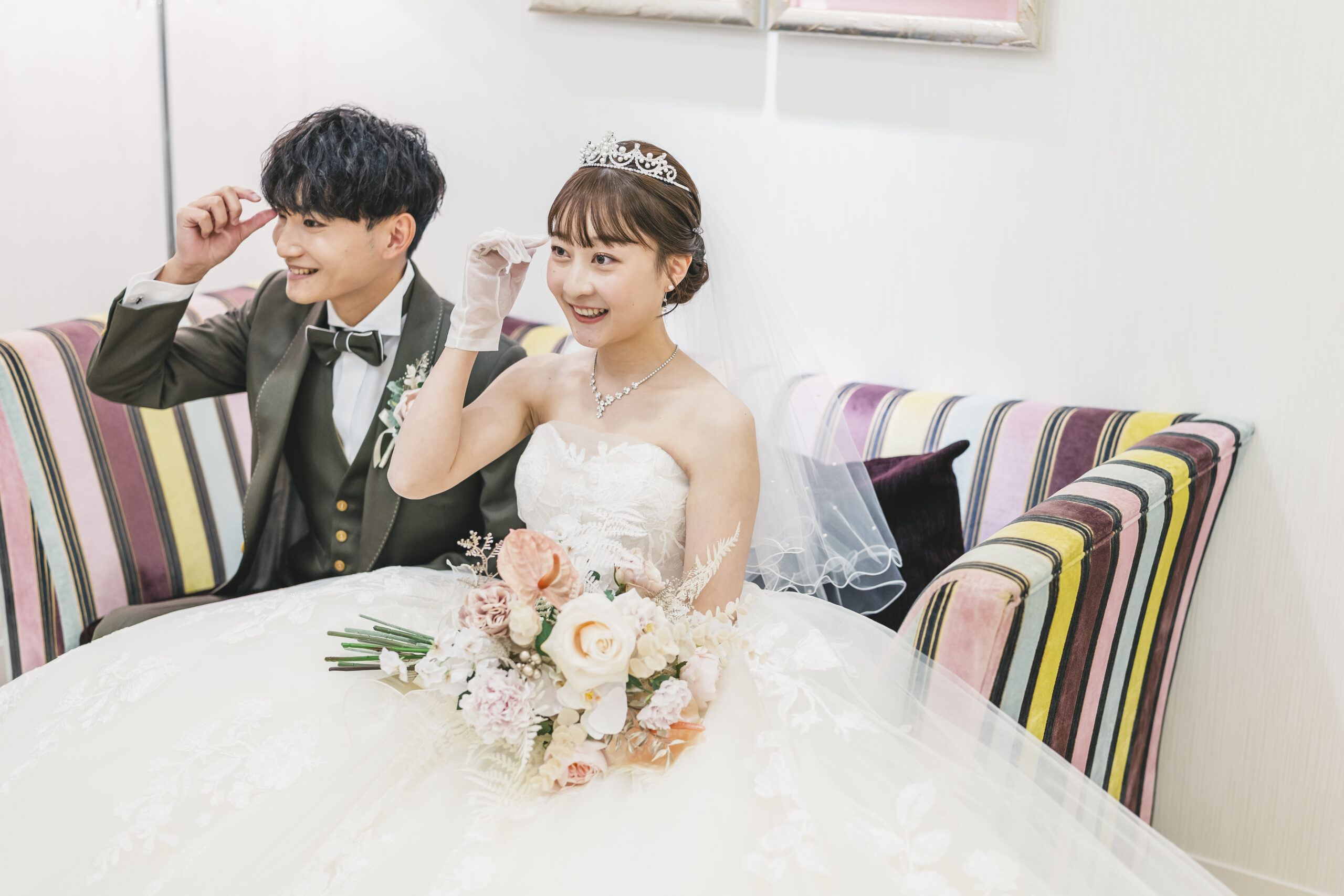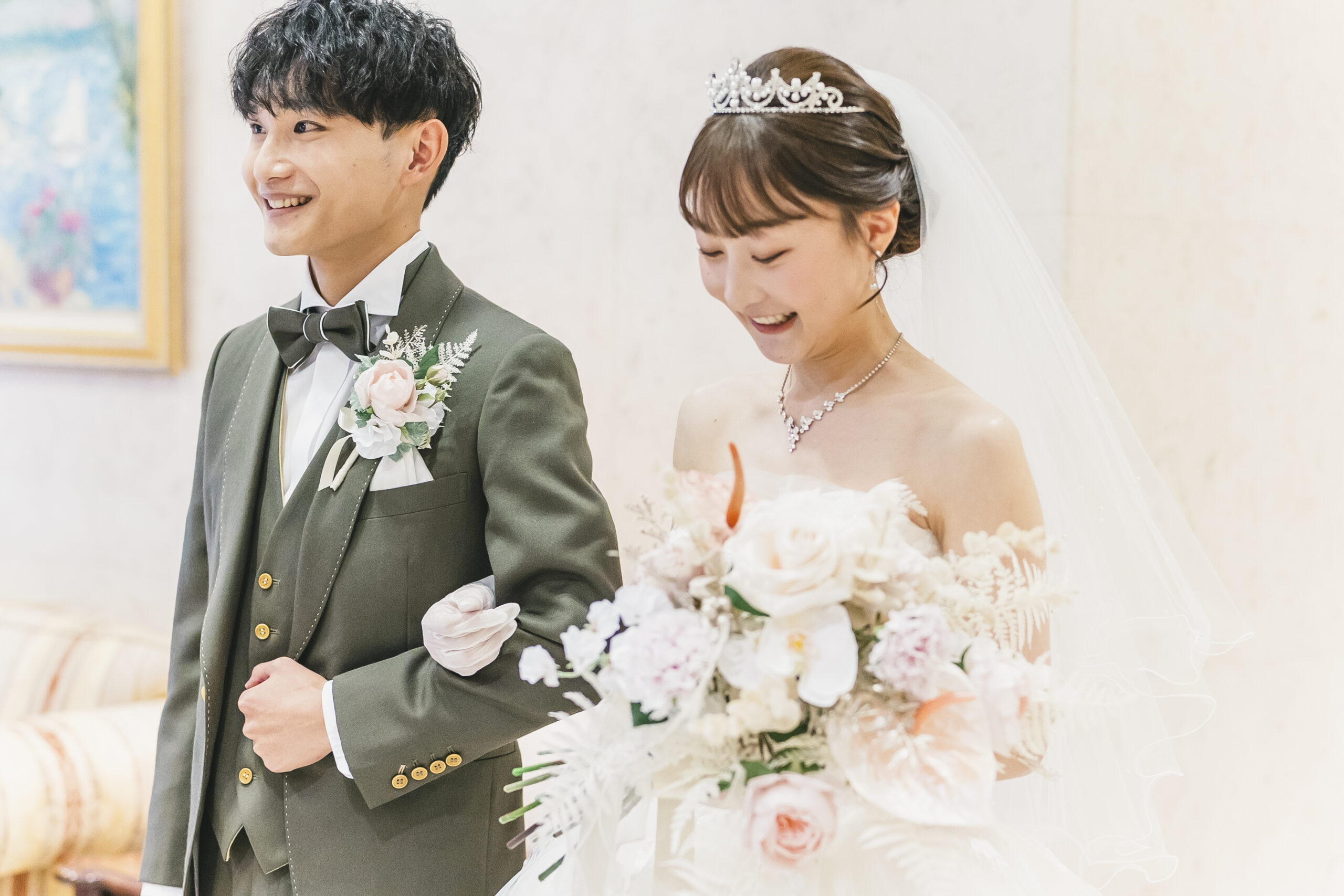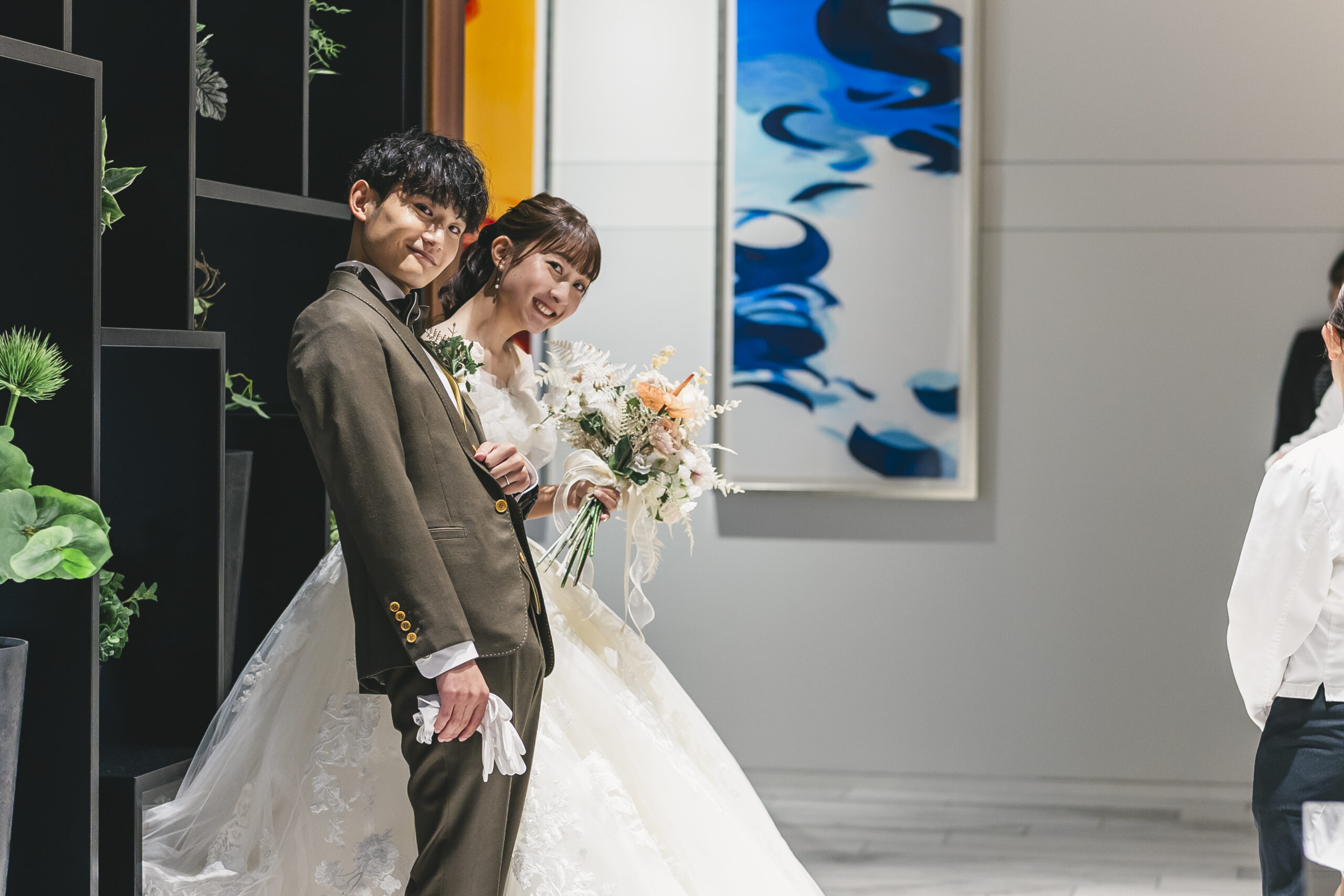 挙式前の緊張がほぐれ、披露宴入場前、可愛らしい笑顔を向けて下さるお二人。
