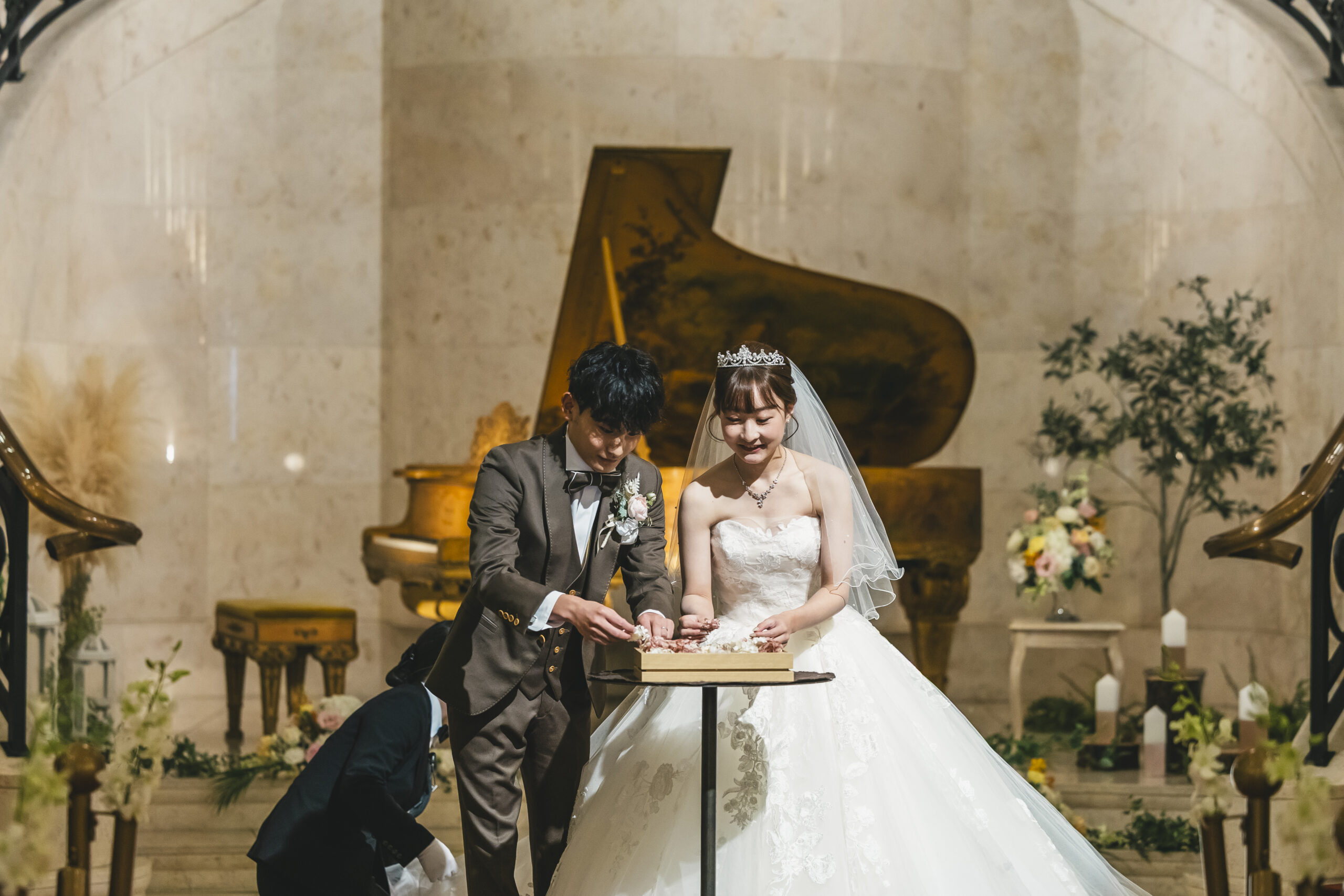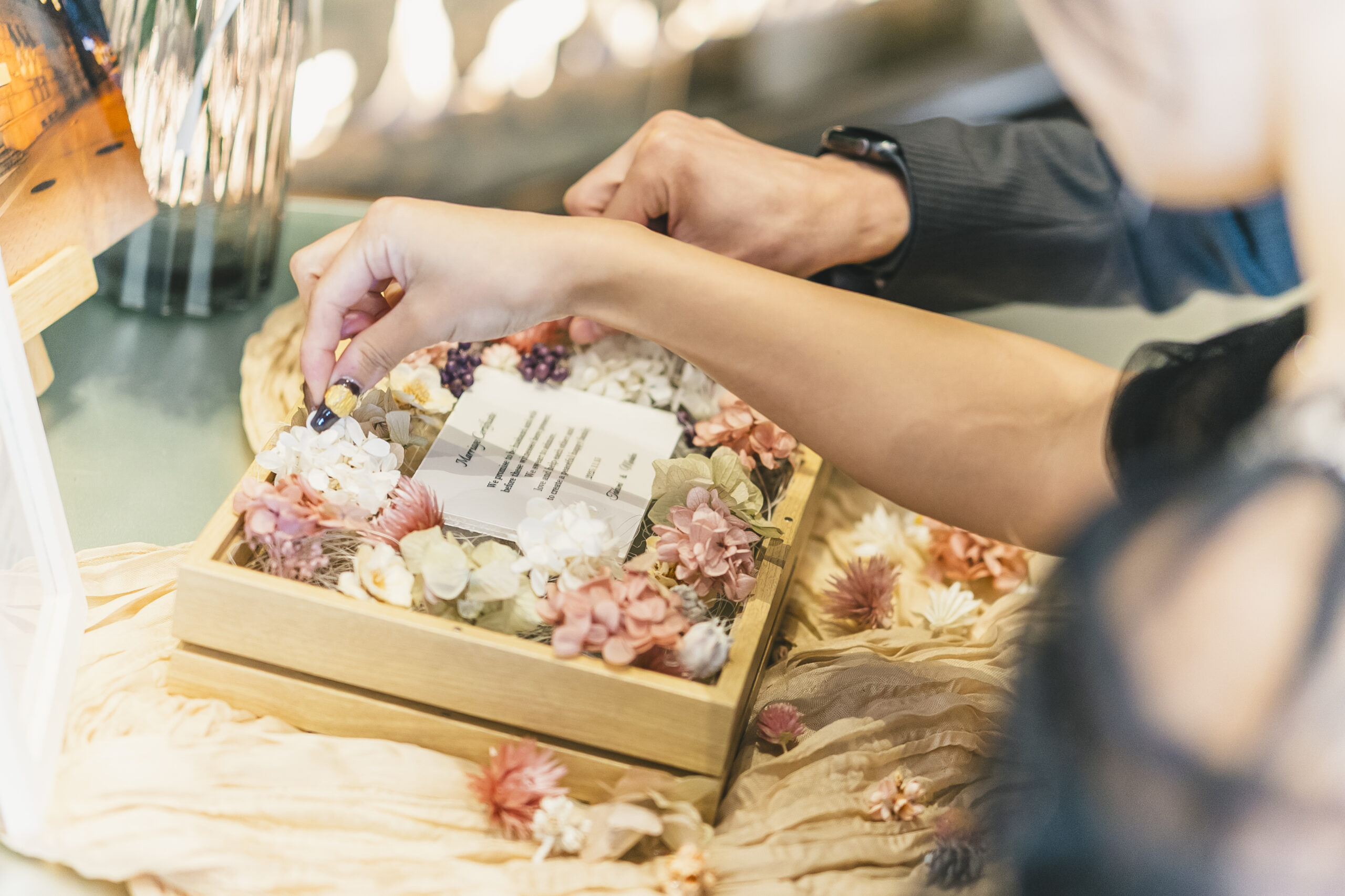 ウェルカムスペースにて、祝福の証しとして、皆様にご参加いただいたフラワーボックスセレモニー。