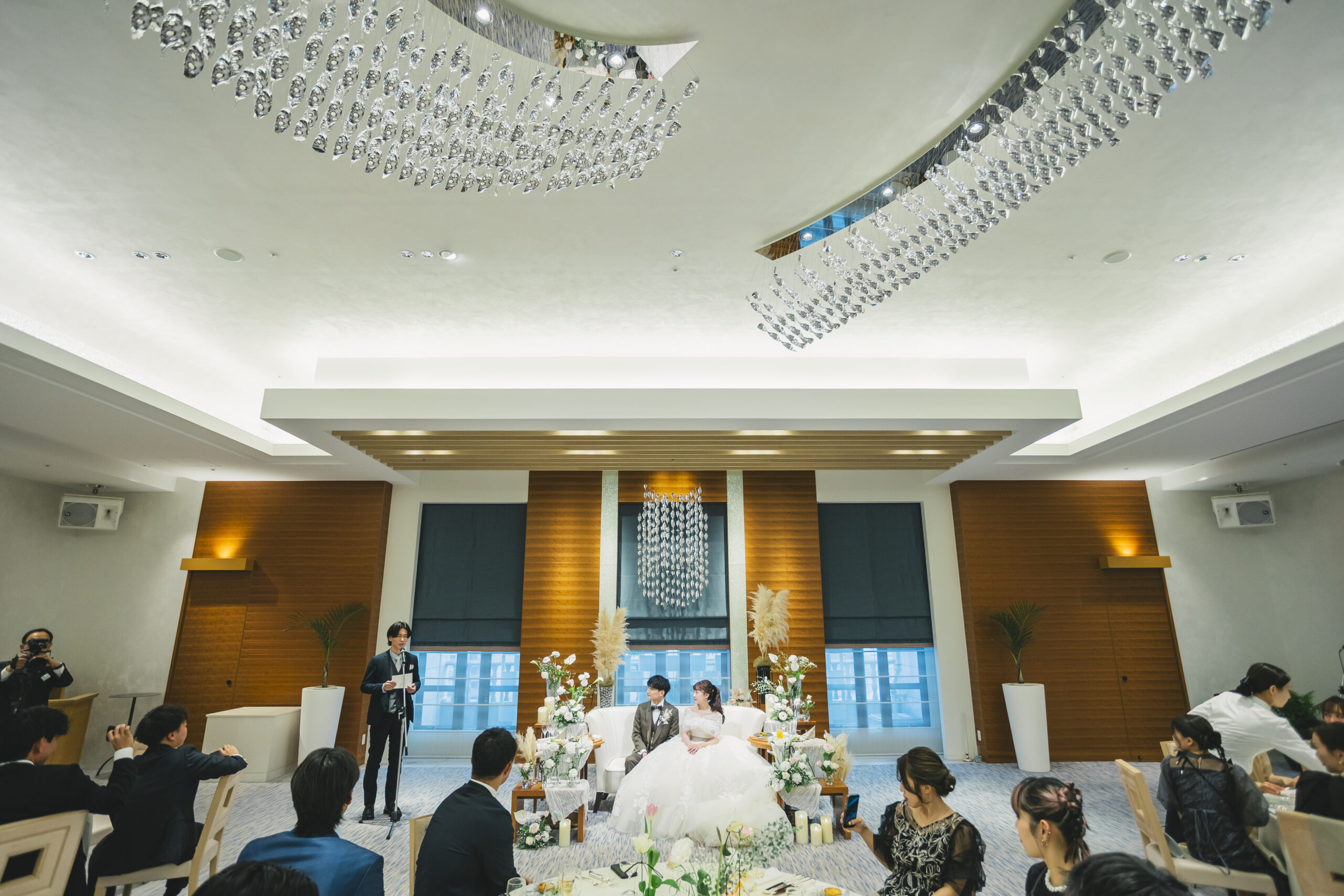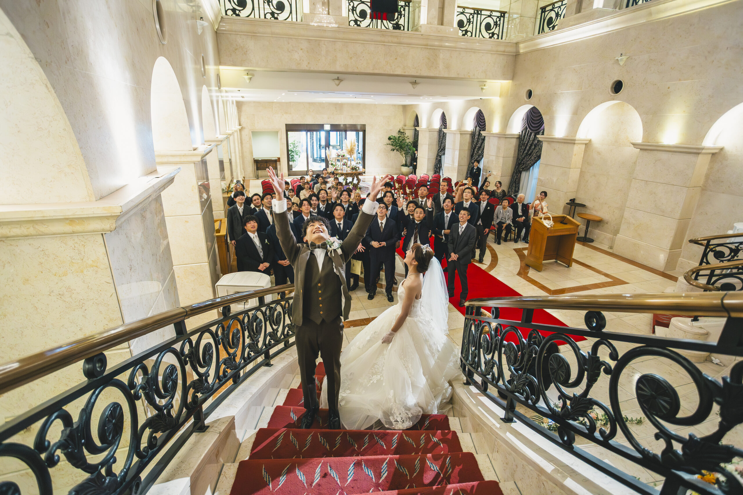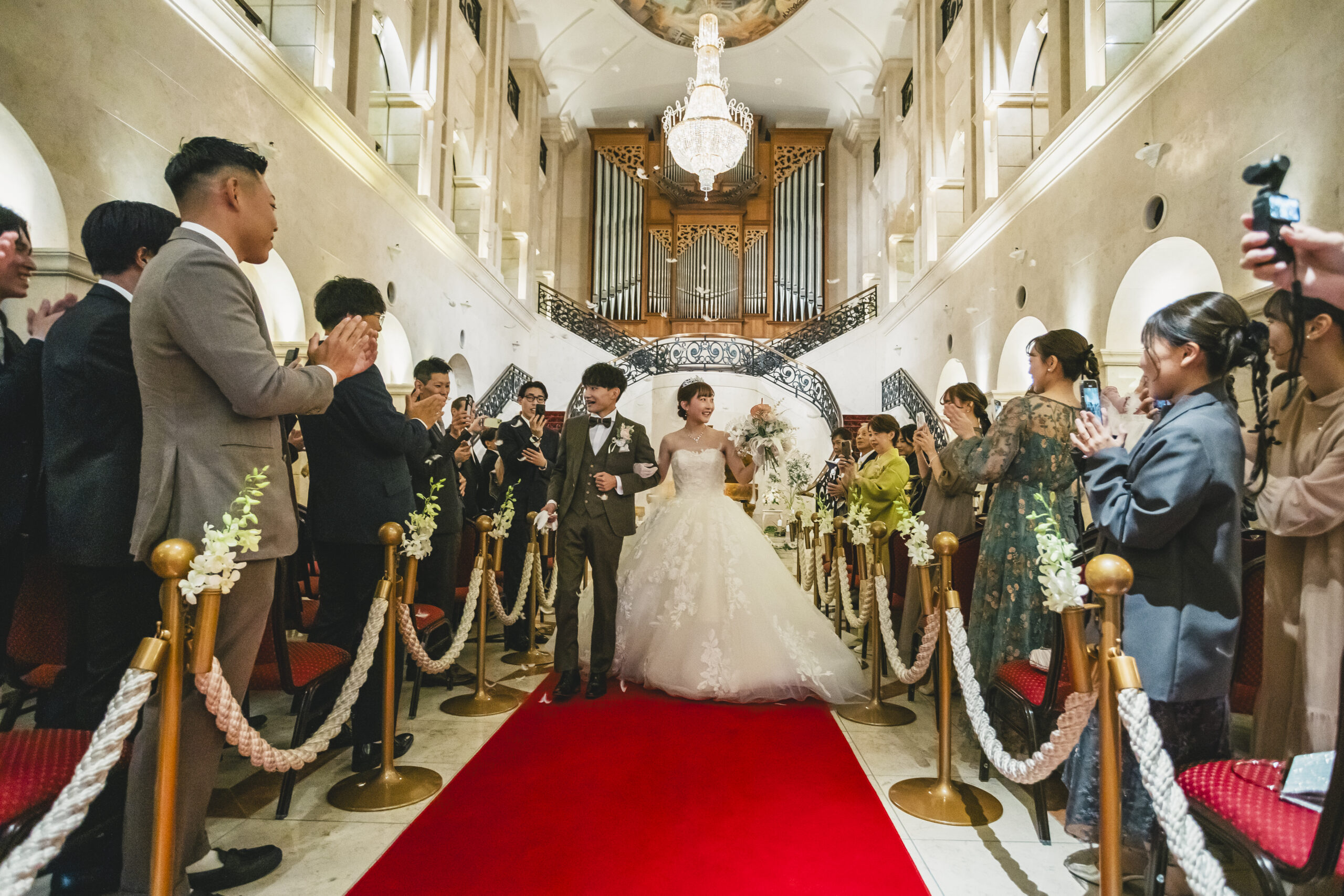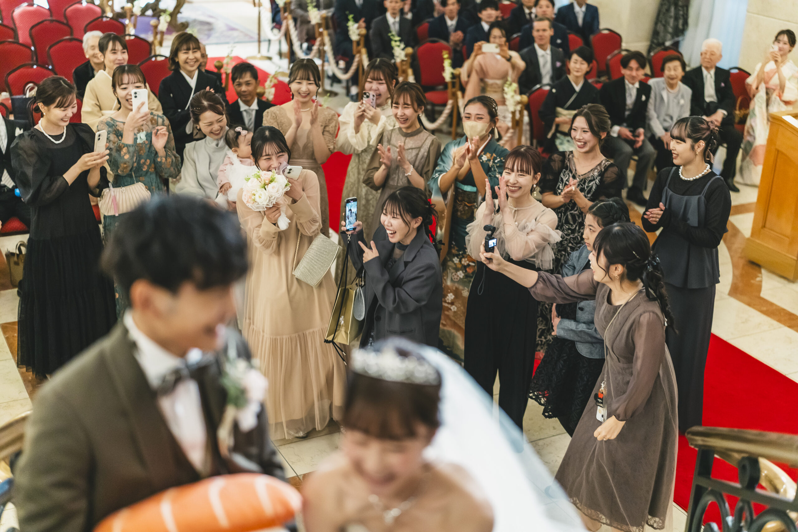 皆様の前で誓いを立てられ、祝福の拍手と共に、笑顔で退場されたお二人。