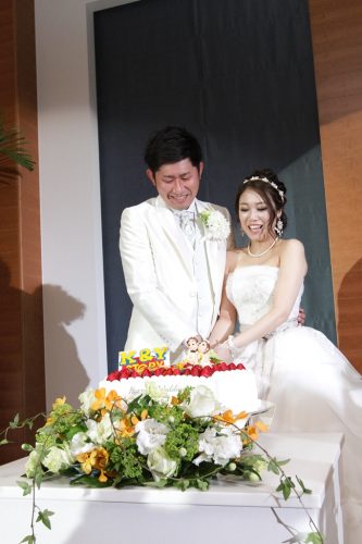 二人が共通で一番重要視していたのが料理でした。事前に試食会に参加できたおかげで、自信を持って当日を迎えられました。料理内容の変更にも快く対応して下さいましたし、量や味も皆様に大変好評でした。ケーキのマジパンもイメージ通りに仕上げて下さいました。