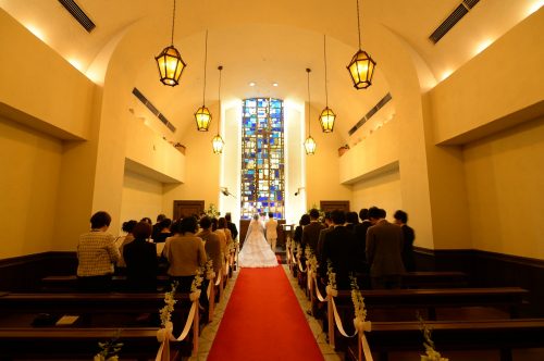 入った瞬間、とっても良いお花の香りがして温かみある証明とステンドグラスが素敵で、美女と野獣っぽくてここを選びました。