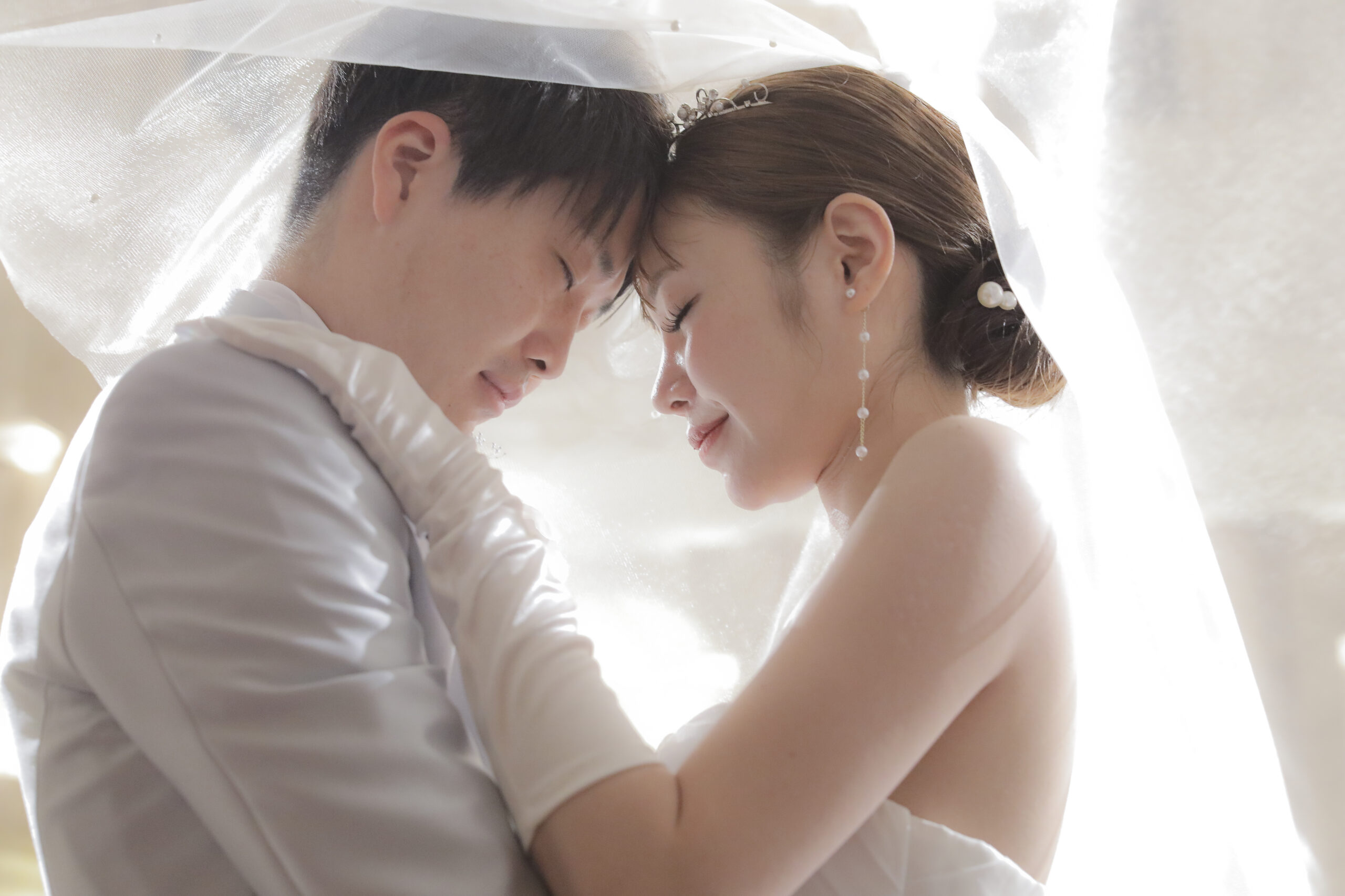 挙式は、“純潔/新しいスタート”を意味するウェディングドレス。