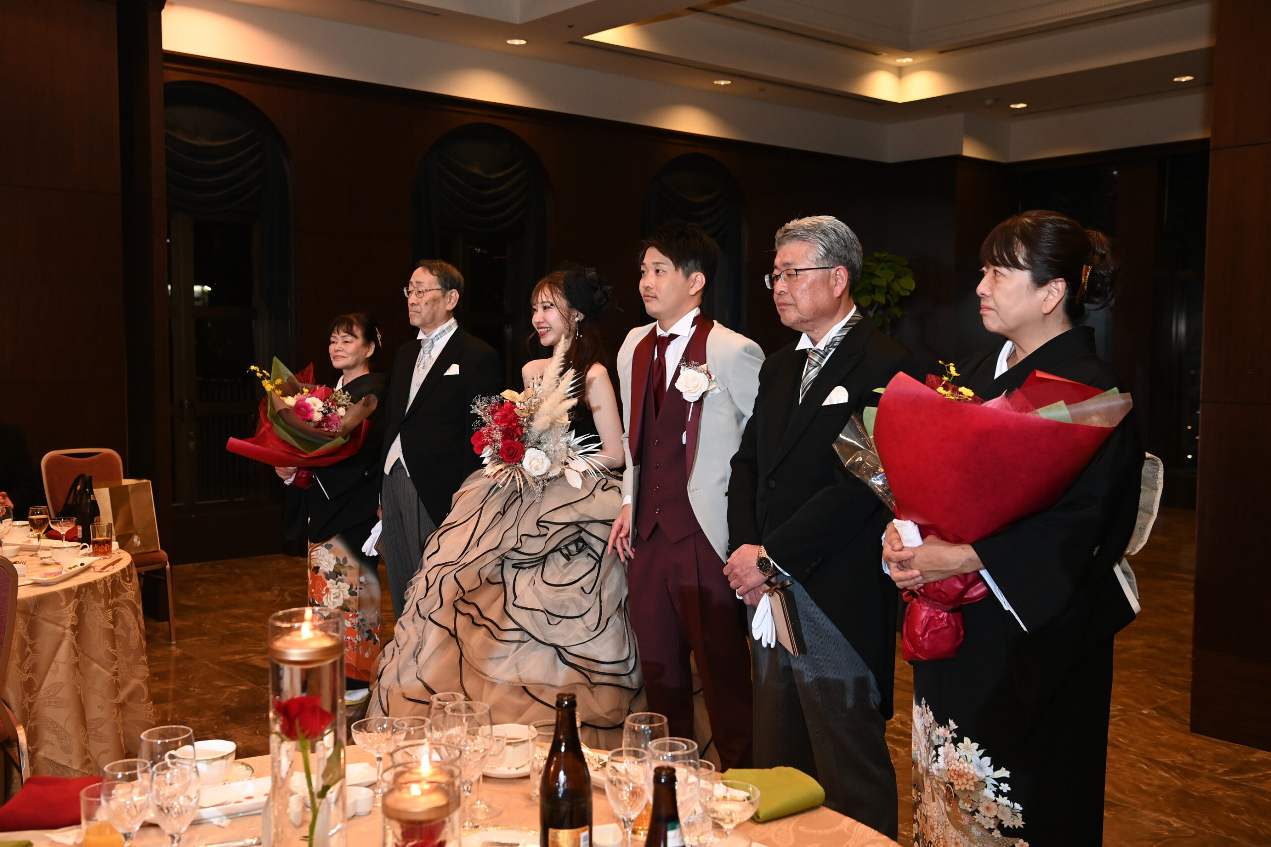 周りの皆さまを大切にするお二人の晴れの日、多くの皆さまが集まった会場は、祝福の言葉、皆さまの笑い声で溢れ、幸せ溢れる特別な空間となりました。