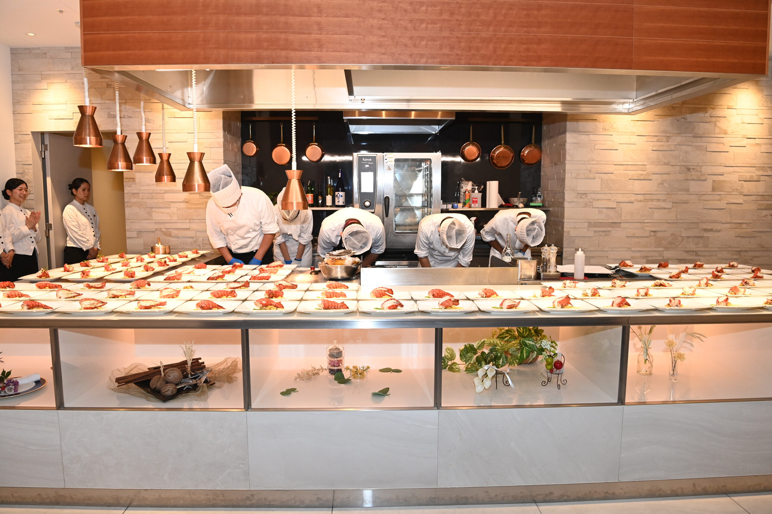 オープンキッチンでの調理はゲストみんなの印象にも残り、デザートビュッフェもすごく好評でした。