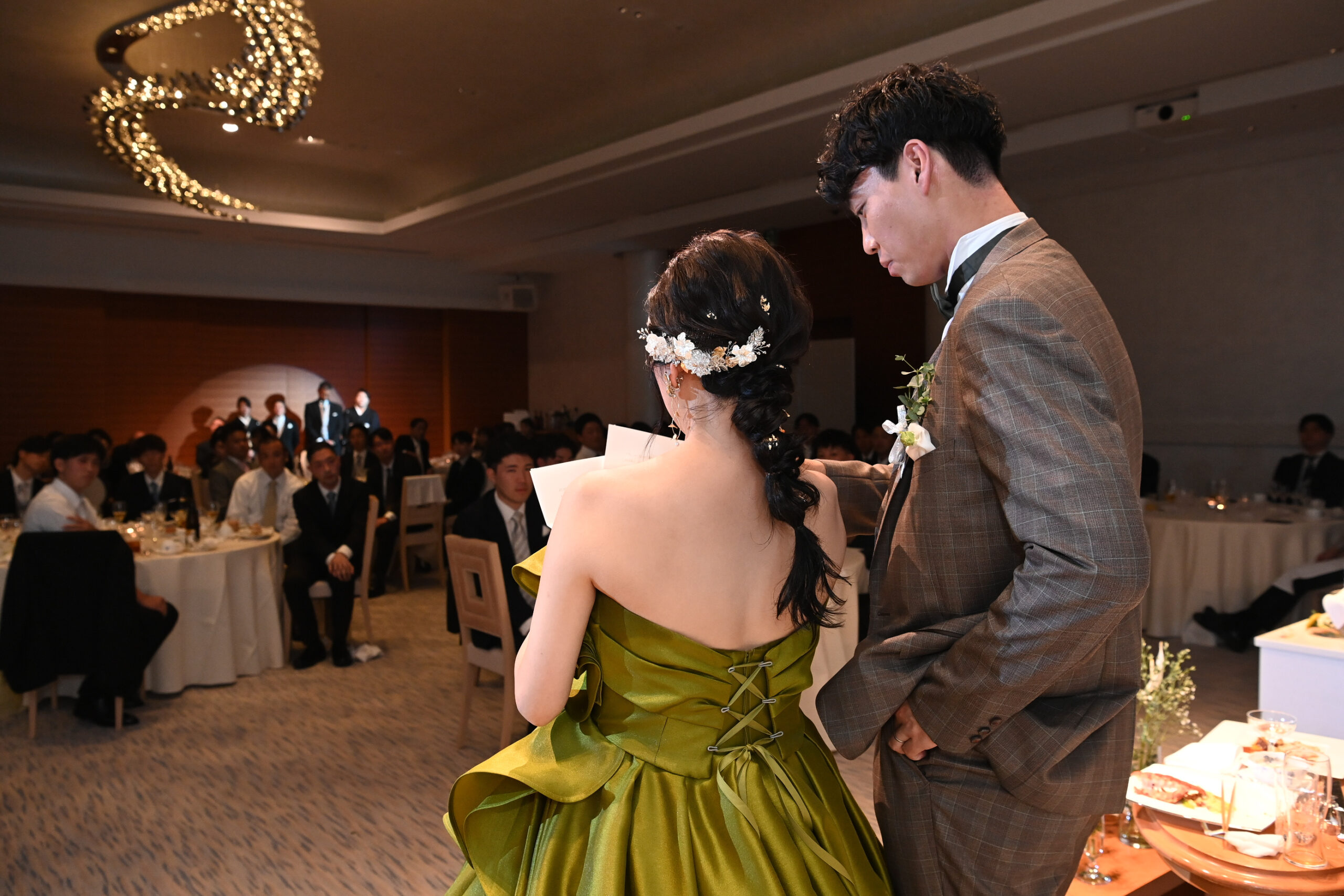 ご家族ご親族様をはじめ、これまで支えて下さった皆さまに感謝の気持ちを伝えたい、そして、皆さまに楽しんでいただきたい、とご準備を頑張ってこられました。結婚式後のお二人のコメントと共に、是非ご覧ください。