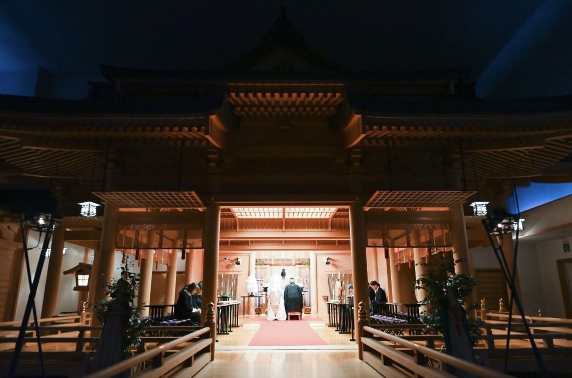 憧れていた神前式をあげることができました。すでに入籍は済ませていましたが、八尋殿にて荘厳な雰囲気の中、夫婦の契りを交わし、正式に夫婦となることが認められたような気がして、身が引き締まるような思いでした。参列した親族も「館内にあるとは思えない!」と言っていました。
