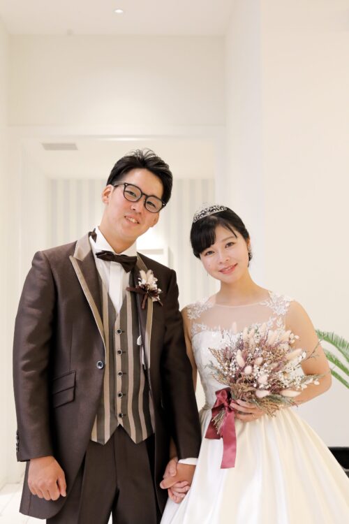 自然が大好きな私達は、ウェディングケーキを丸太に見立てたバウムクーヘンにしたいとお願いしました。すると、バウムクーヘンにはとてもいい意味合いがあると教えて頂き、即決定。持参したノコギリで丸太(バウムクーヘン)をカットするという私達ならではの演出ができてとても満足しています。ゲストの方々にも印象的だったとおもいます。お色直し後の入場ではドレス色当てクイズとして、ゲストにペンライトを振っていただくという演出をしました。プランナーさんに提案をしていただき、やって良かったととても思います。ゲストからの評判もとても良かったです。他にも両親への感謝を伝えるセレモニーだけでなく、おじいちゃん・おばあちゃんにも感謝を伝えるセレモニーもやらせていただけました。おじいちゃん・おばあちゃんっ子だったので伝えることができて本当に良かったと思います。