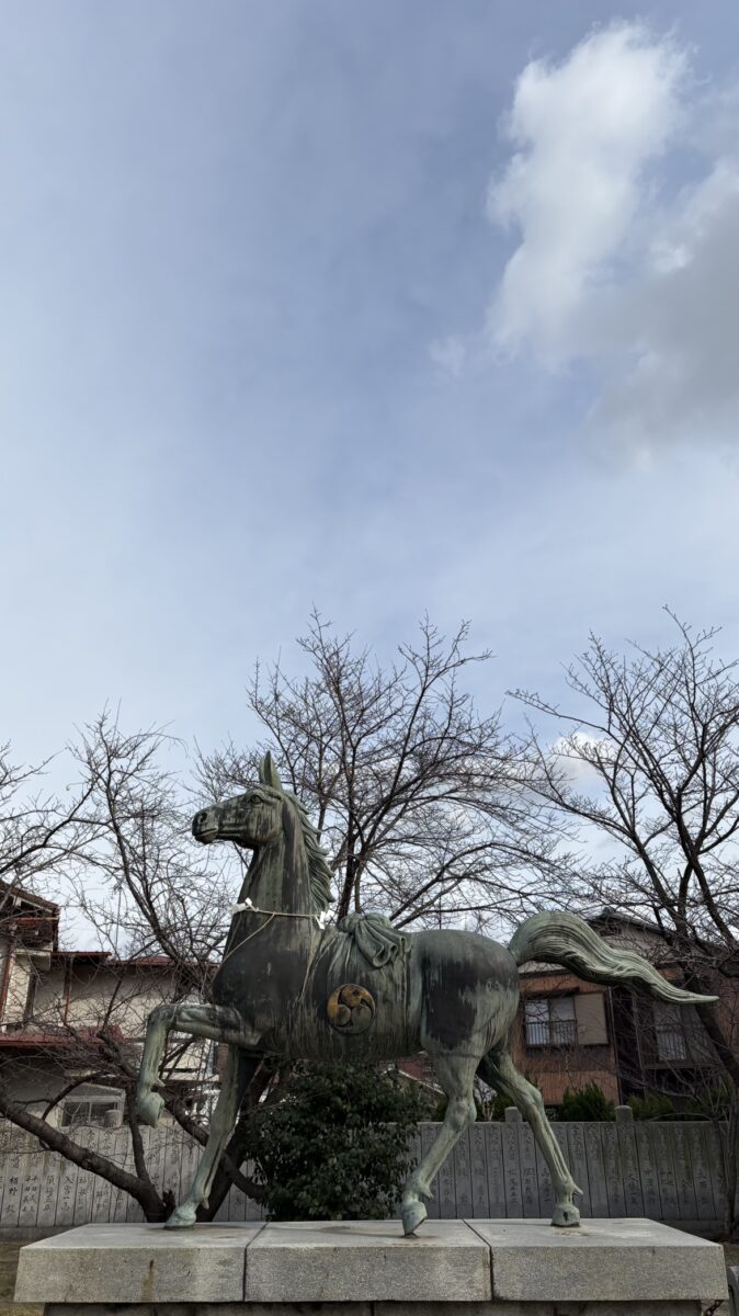 初詣に行った神社にあった馬を添えて・・・